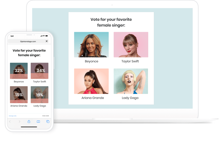 Whether you’re a business owner, social media manager, or content creator, our poll creator software is designed to help you grow engagement. It’s perfect for all social media platforms, feature-rich, and easy to use on any device. Make different types of polls, get more poll responses, and enjoy all the popular features you need to make your audience click, share, and smile.