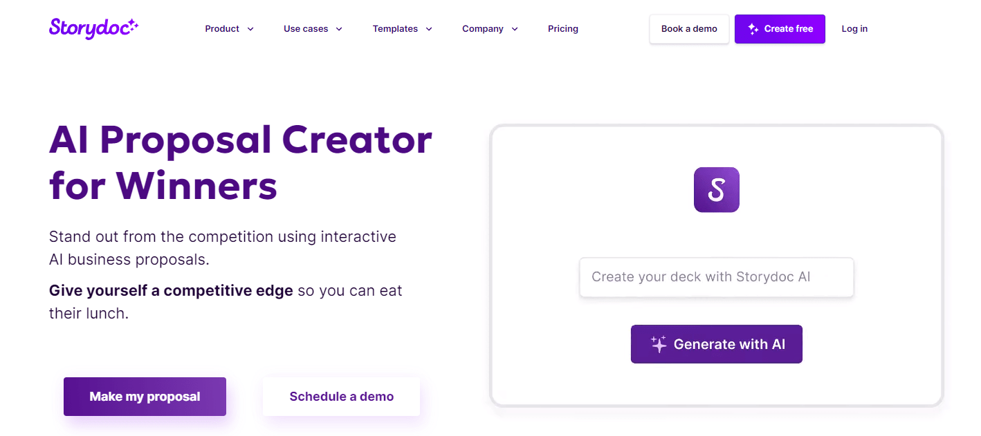 - AI Assistant: Storydoc’s AI assistant can generate copy and media that needs minimal final editing.