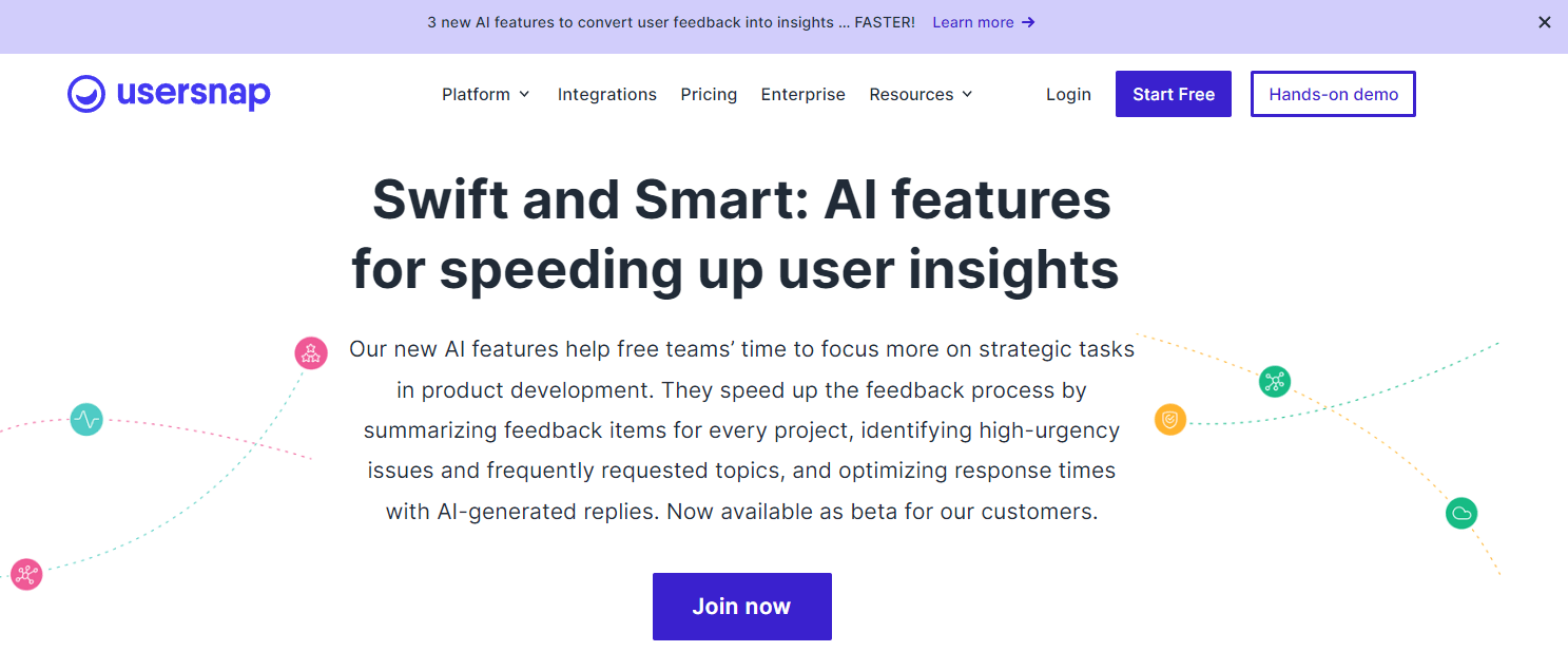 Usersnap uses AI to gather valuable insights about your customers, helping you to improve your marketing campaigns and services. With Usersnap, you can capture, organize, respond to, and scale user feedback all in one place. Usersnap’s AI-powered smart labels help prioritize issues by automatically identifying and flagging high-urgency problems and frequently requested topics. This streamlined approach ensures that your team can quickly address critical feedback, resulting in faster and more effective responses.