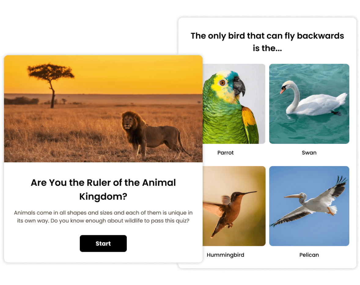 Our BuzzFeed quiz maker lets you make unlimited quizzes and supports all popular formats, giving you the option to choose the type of quiz that fits your specific use case.