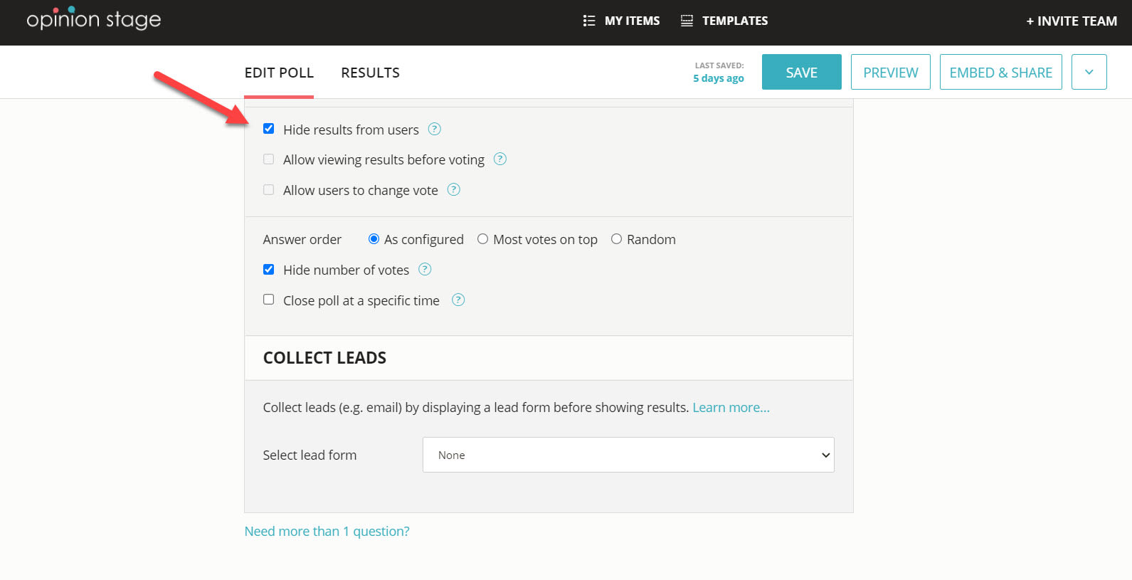 So, scroll down to the poll settings and tick the “hide results from users” box. This way you will be able to reveal the results personally and use them to lead into your talk.