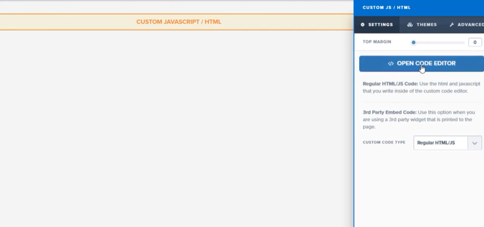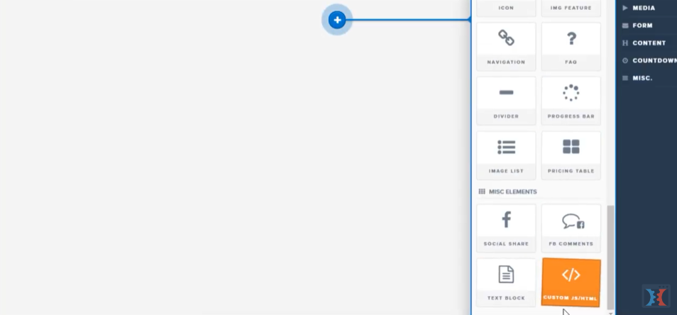 Then click the + again, scroll down the menu and click Custom JS/HTML.