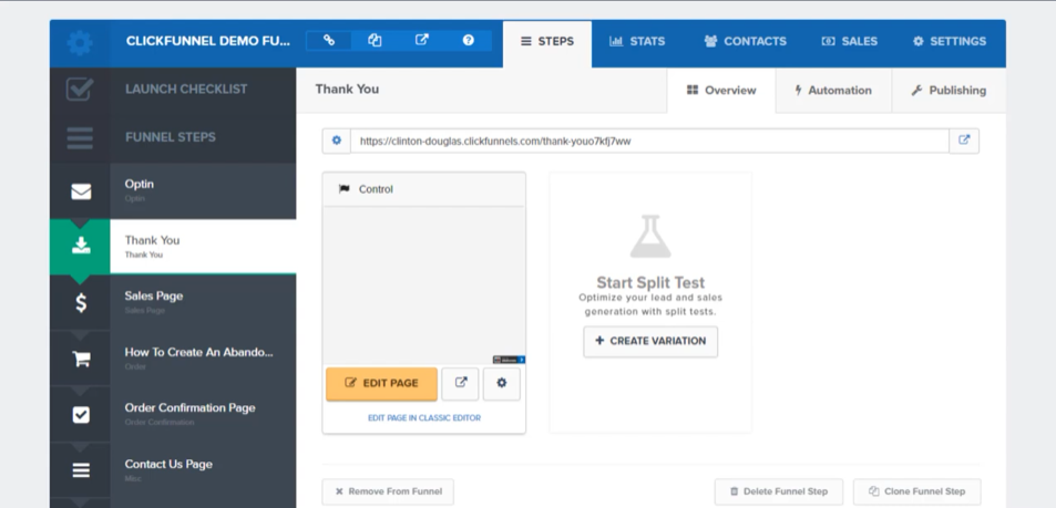 Log into your ClickFunnels account and open your funnel. Select the step in your funnel where you want to add your quiz. Then click Edit Page.