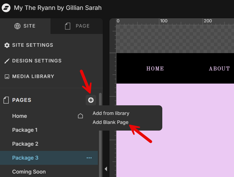 You can add your survey to an existing page or a new one. To create a new page, just click the + icon and select Add Blank Page.