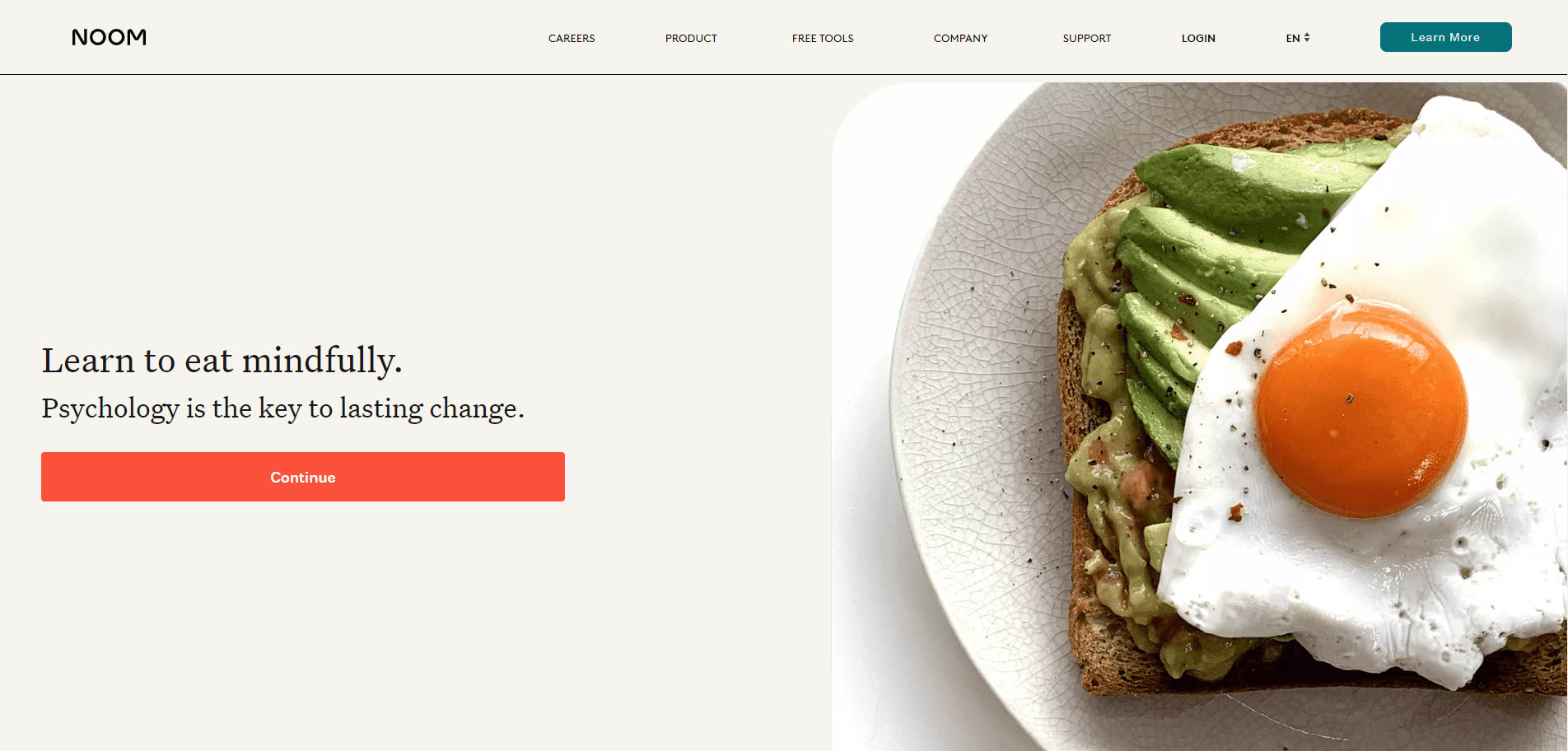 Noom, a healthy living and nutrition app uses a personality quiz as its onboarding funnel. The quiz stars as the main feature on the company’s homepage and takes people on a conversational journey towards conversion.