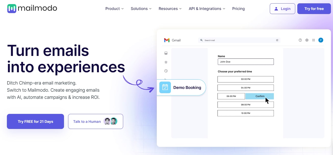Mailmodo is an email marketing software that helps you create and send interactive emails your customers will love. It allows you to easily make app-like experiences in email without coding. With Mailmodo’s AMP technology, you can boost engagement and reduce redirections by adding calendars, forms, surveys, reviews, live ratings, and more to emails.