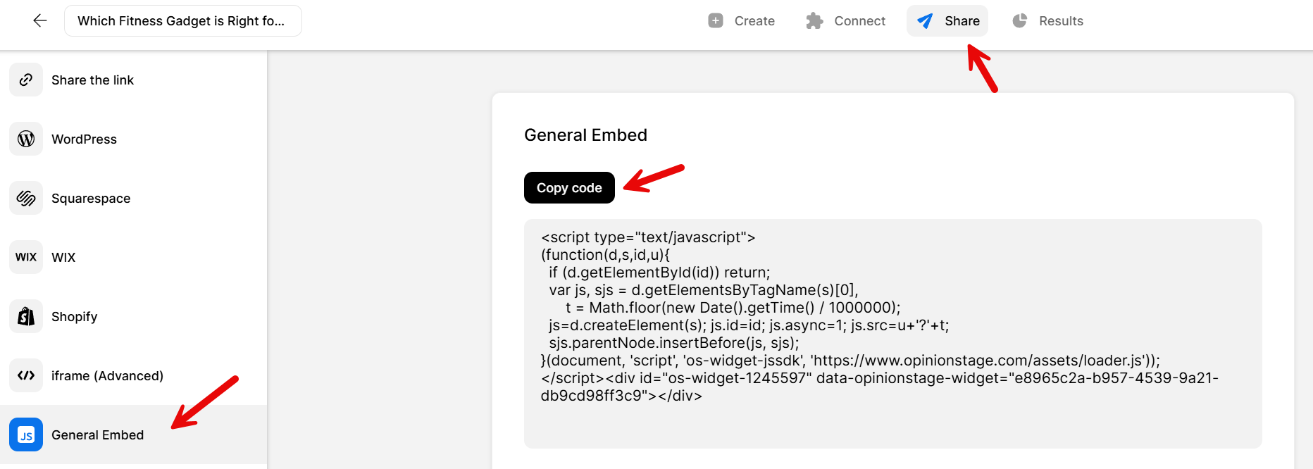 2. Copy the quiz embed code
