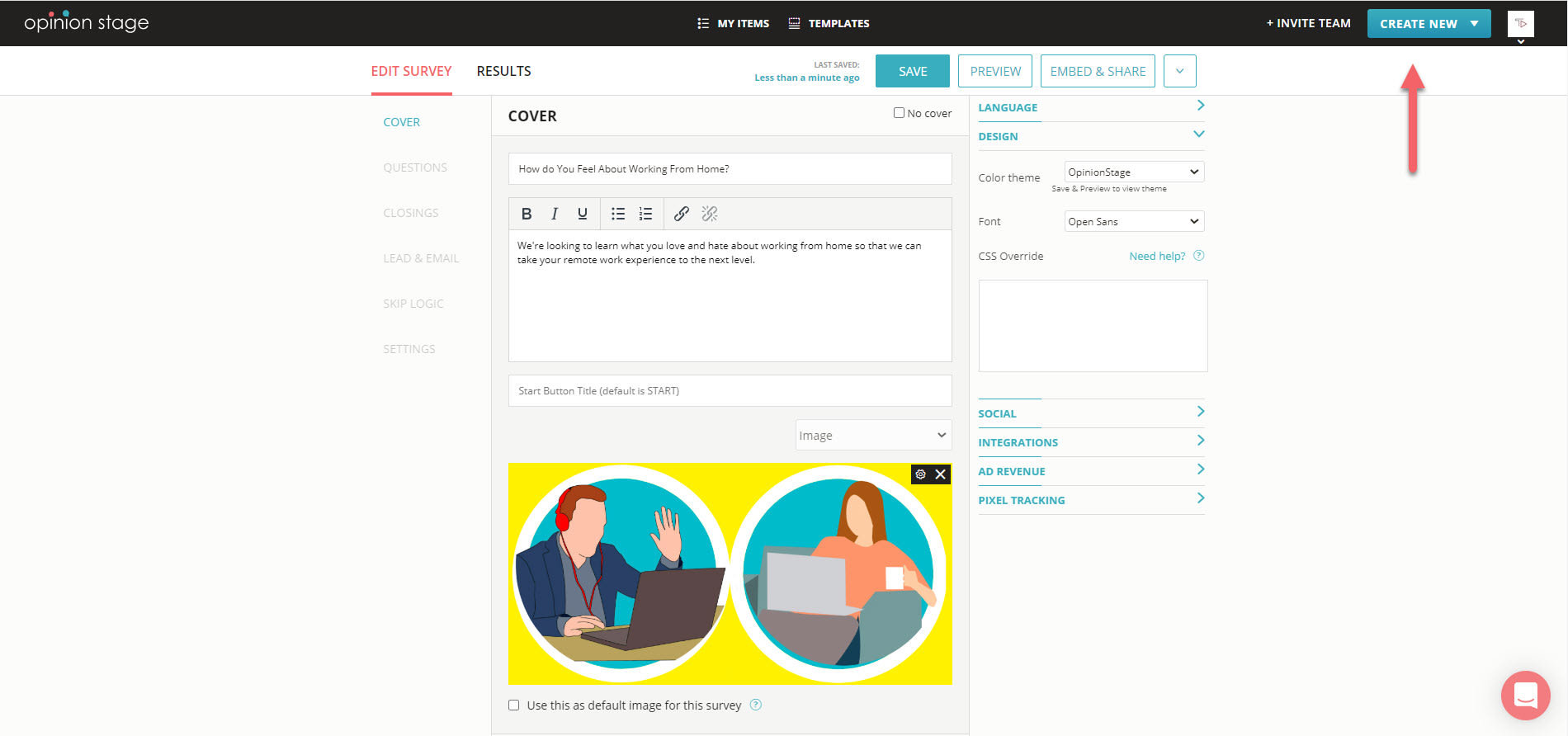 We recommend placing the survey above the fold, in the main section of the page, or in a popup. Selecting a good theme can also help make your survey stand out.